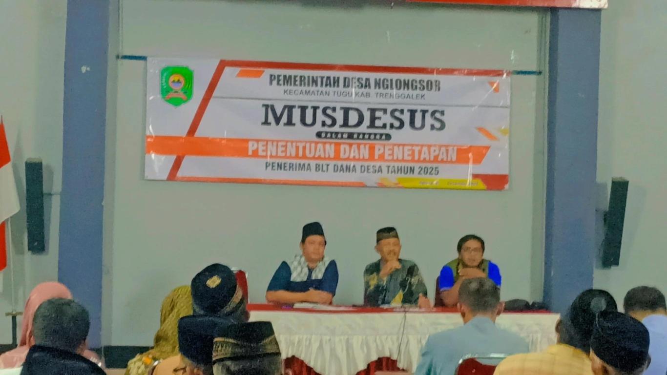 Pada hari Kamis kemarin tanggal 19 Desember 2024, Desa Nglongsor Kecamatan Tugu Kabupaten Trenggalek telah menyelenggarakan Musyawarah Desa Khusus (Musdesus) guna menetapkan penerima Bantuan Langsung Tunai Dana Desa (BLT-DD) Tahun Anggaran 2025. Acara dihadiri oleh Pendamping Desa dan Pendamping Lokasl Desa, Kepala Desa, perangkat desa, Ketua Badan Permusyawaratan Desa (BPD) beserta anggota, Ketua RT dan RW se-Desa Nglongsor, serta Babinsa dan BKTM. Upaya ini dilakukan sebagai implementasi dari Permendesa PDTT Nomor 13 Tahun 2024 tentang prioritas penggunaan Dana Desa Tahun 2025, untuk penyaluran BLT-DD Tahun 2025 maksimal 15 % dari Dana Desa.