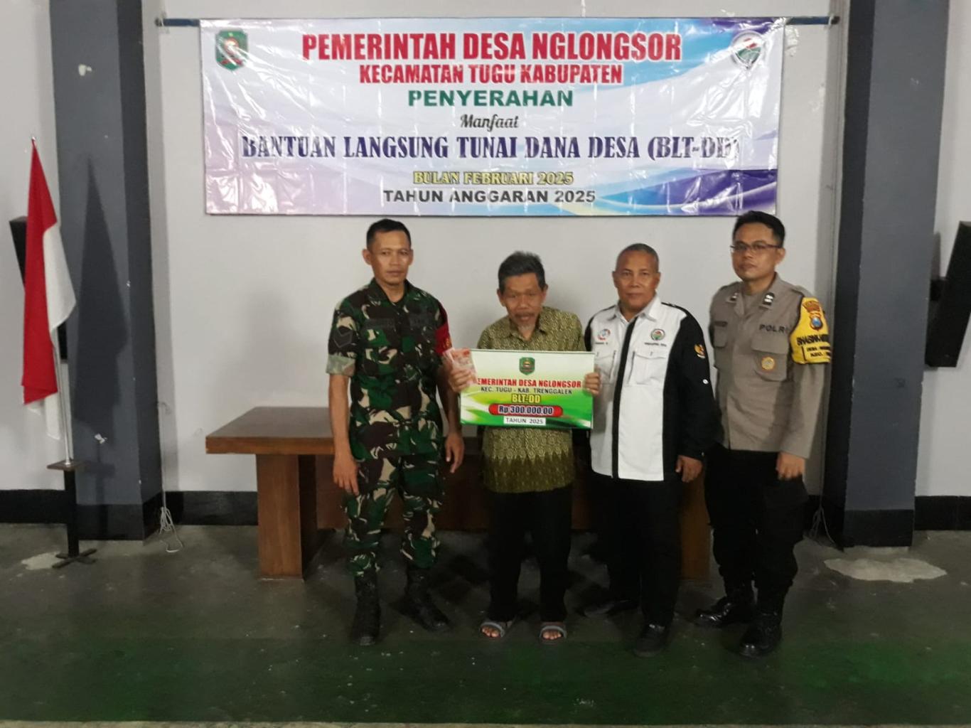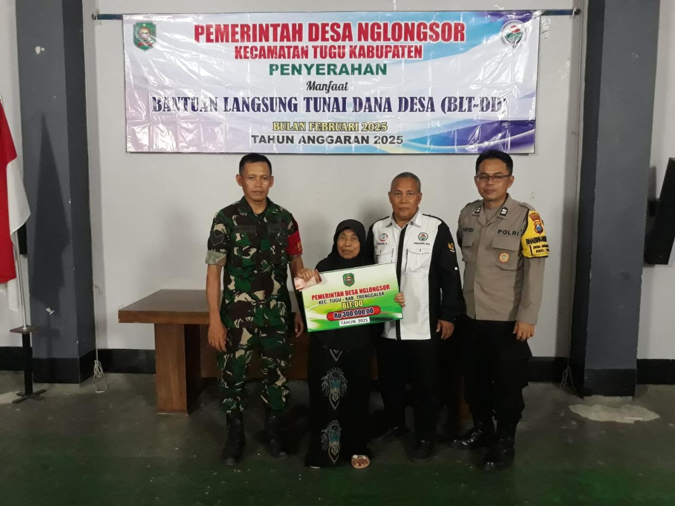 Kamis, 13 Februari 2025 Pemerintah Desa Nglongsor telah melakukan kegiatan penyaluran Bantuan Langsung Tunai Dana Desa (BLT DD) Bulan Februari 2025. Kegiatan ini dilaksakan di Aula Kantor Desa Nglongsor yang dimulai pukul 09.00 WIB sampai pukul 11.00 WIB.