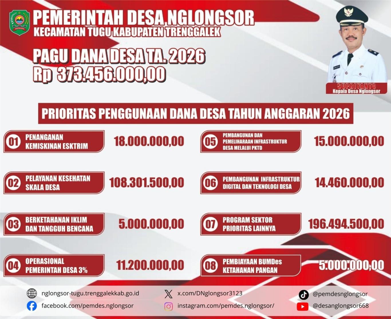 Adapun prioritas penggunaan Dana Desa Tahun Anggaran 2026 Desa Nglongsor meliputi: